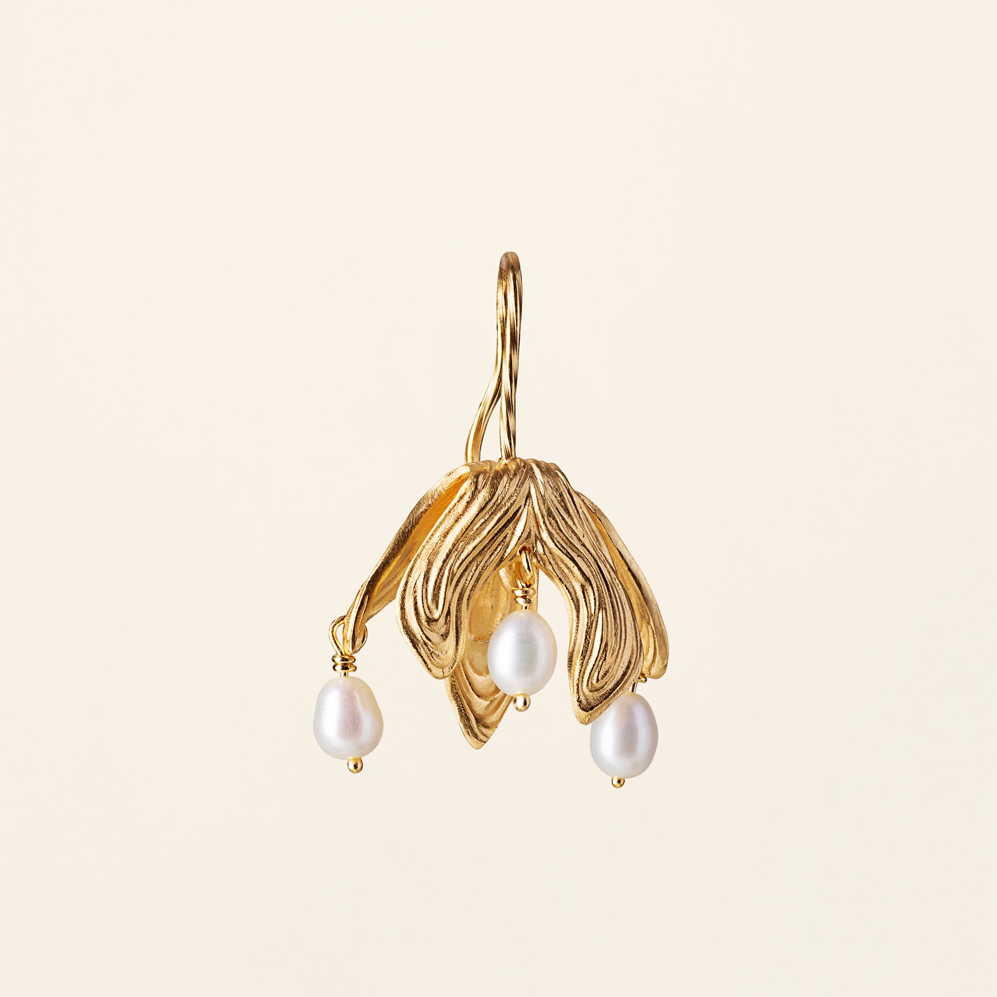 Griet earring in 18K gold-plated silver with pearls. The earring is 3cm high and 2cm wide.