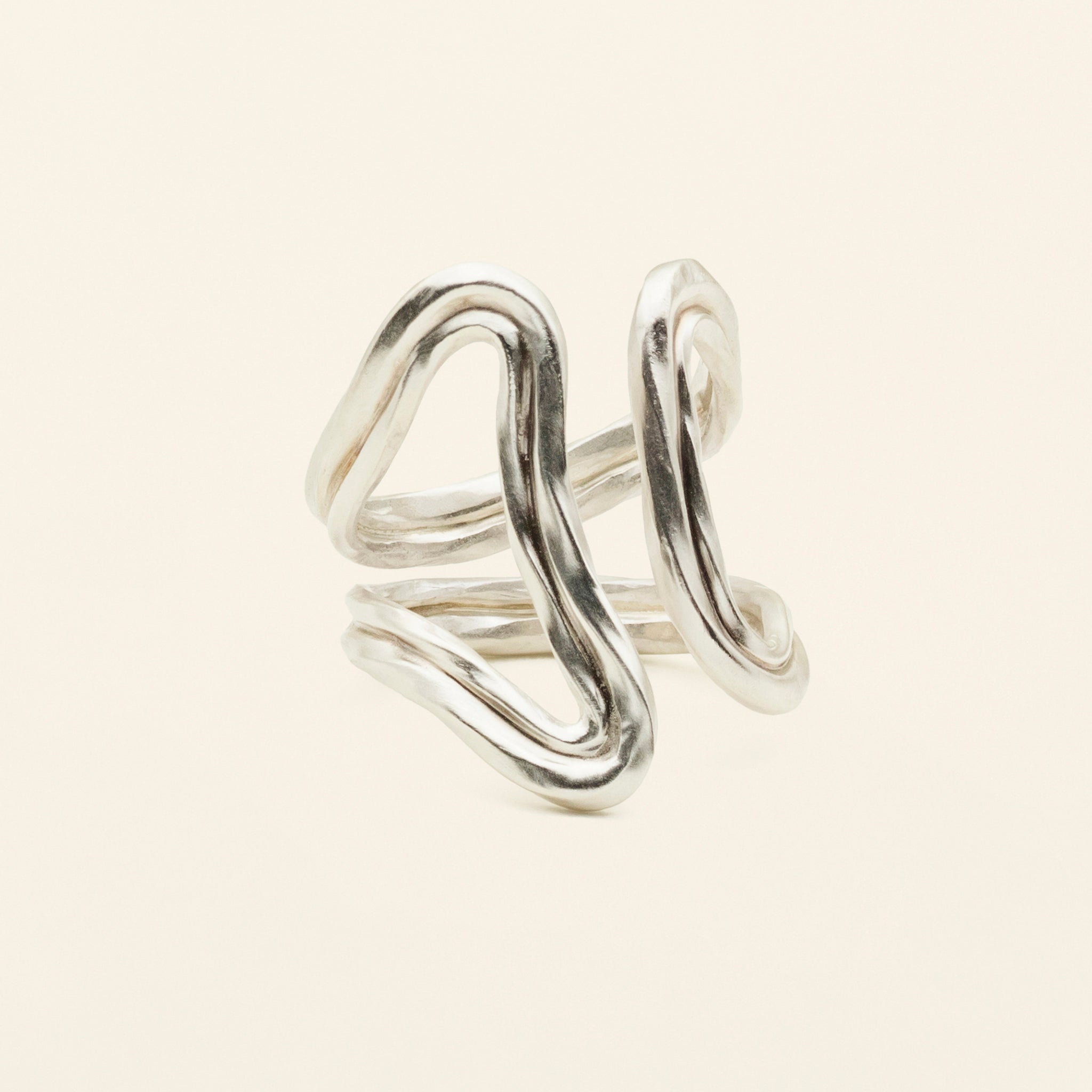 A manipulation of the precious metal to the point before it surrenders. A constructed flow with function. Earrings, rings and bracelets are interconnected in a new order.”