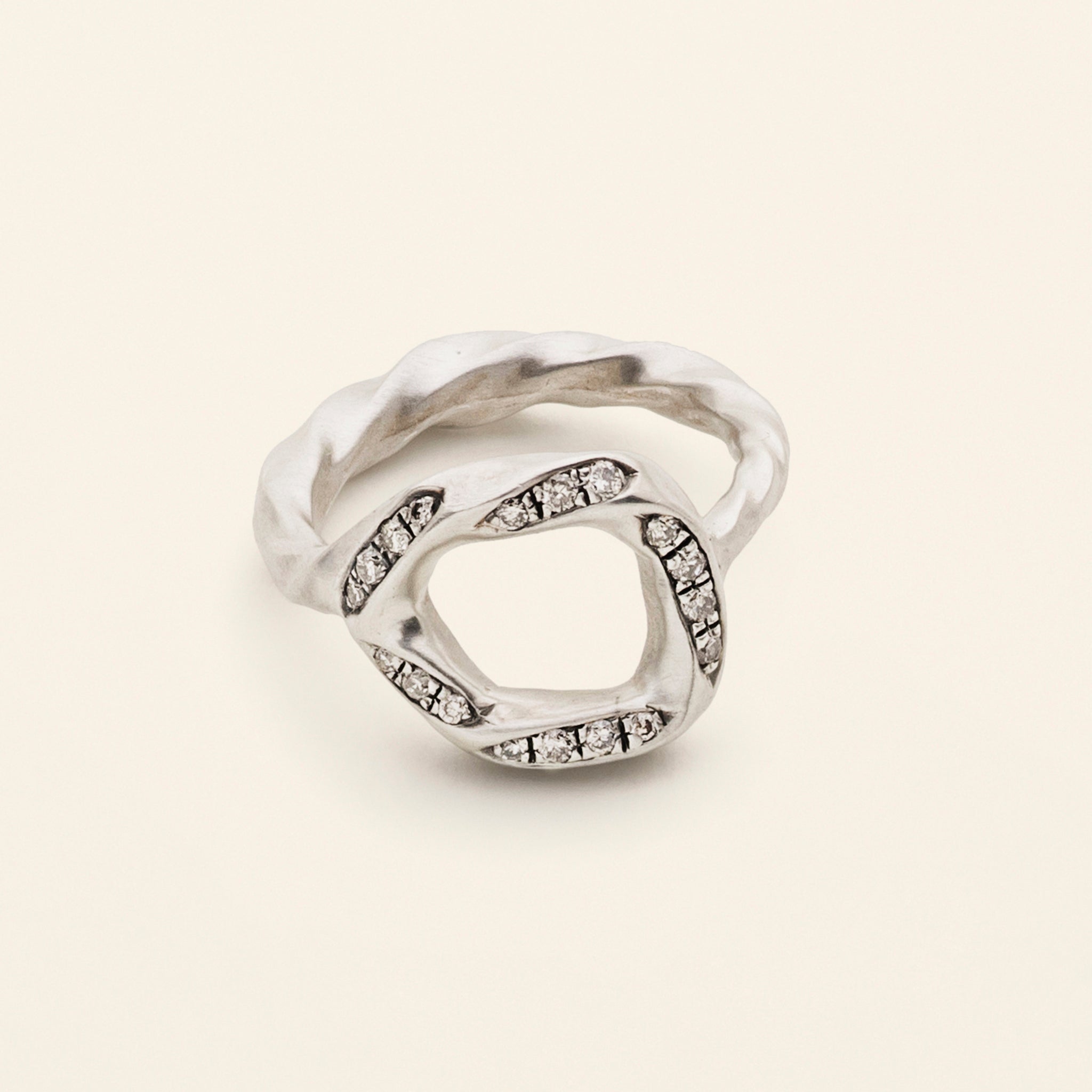 Small Flow O-ring in silver with white diamonds. Made to order in the desired size. Delivery time 6-8 weeks.